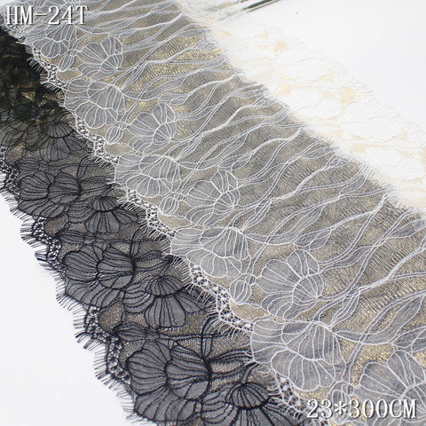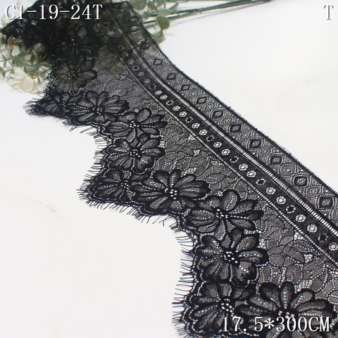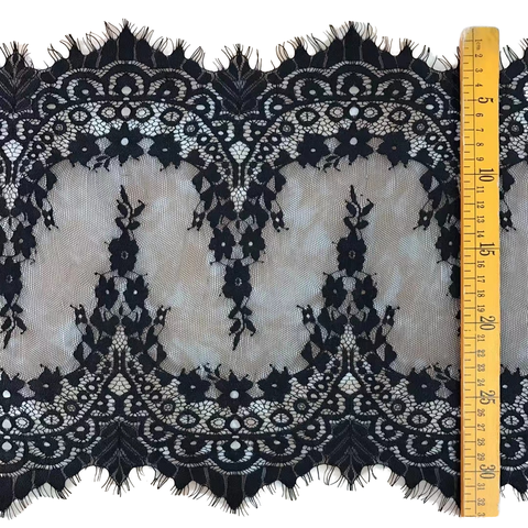 3 metri di lunghezza nuovo Nylon 32cm di larghezza morbido francese ciglia Chantilly tessuto di pizzo nero per abiti da donna abbigliamento da ballo all'ingrosso