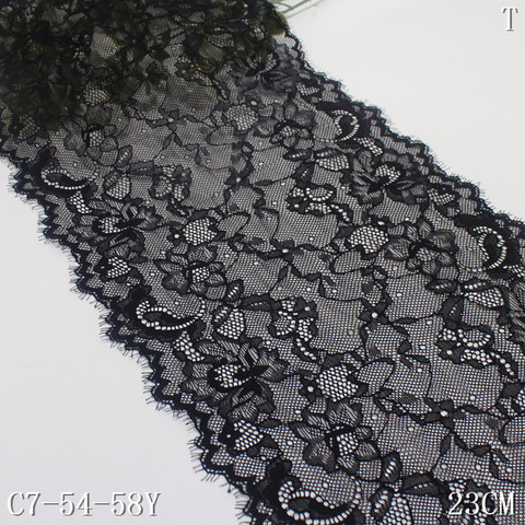 Vendita calda 23cm maglia nera elastica tessuto di pizzo delicato ciglia francesi rifiniture in pizzo ecologico per la decorazione di abbigliamento