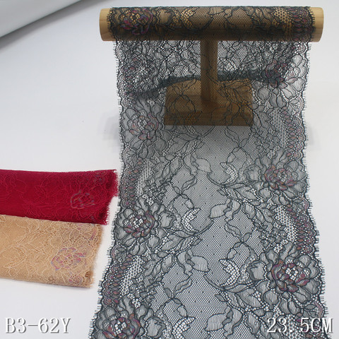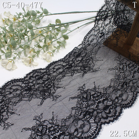 22cm di larghezza morbido tratto nero maglia francese Chantilly fiori bordo Vintage floreale ciglia in pizzo Spandex per biancheria intima