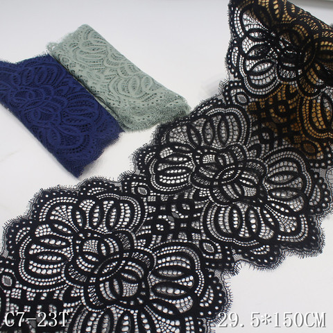 Moda pizzo francese personalizzato 29cm Nylon 100% morbido nero verde blu maglia ciglia tessuto pizzo Chantilly per vestiti accessori
