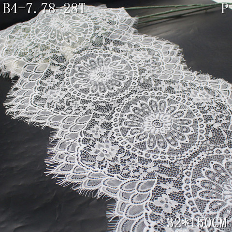 Merletto Non elasticizzato in Nylon bianco sbiancato francese 32cm di larghezza morbido floreale con ciglia Chantilly bordo in pizzo Eco per abiti